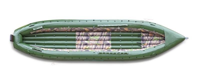 Профилированная геометрия дна обеспечивает хорошую курсовую устойчивость и высокую скорость хода (как при использовании маломощных моторов, так и под веслами), а его арочная конструкция придает лодке продольную и поперечную жесткость.