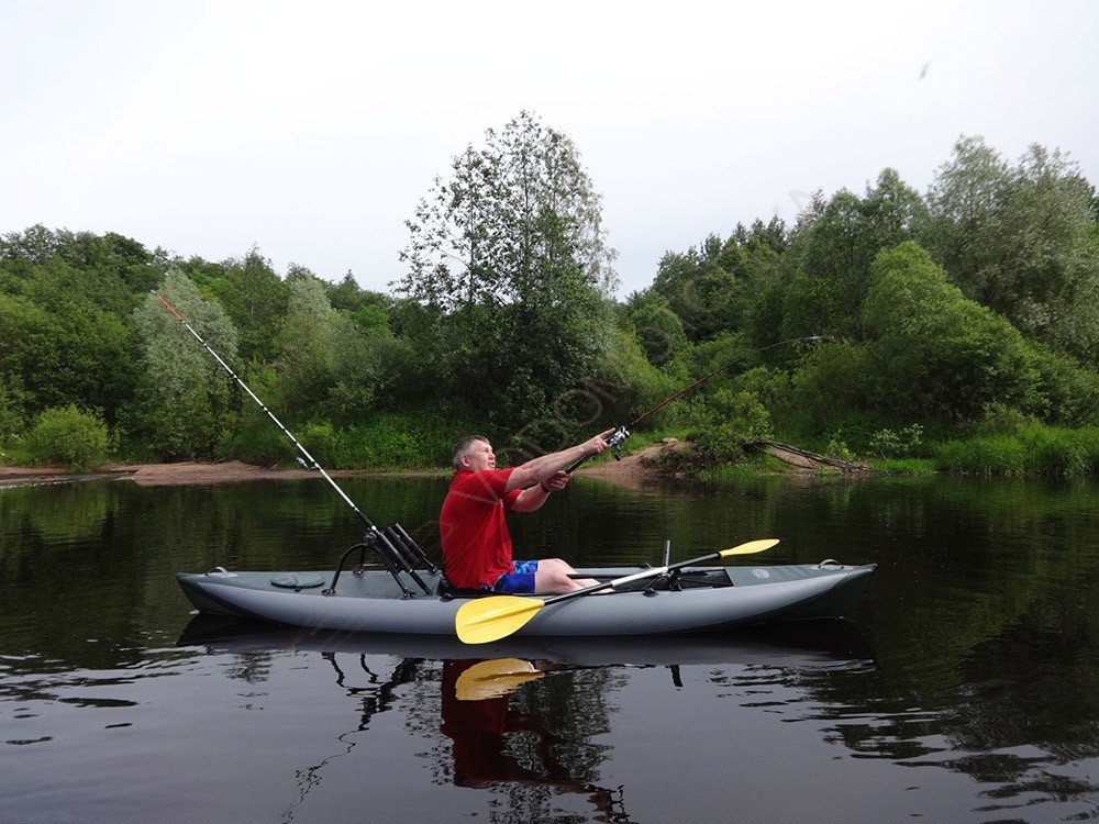 Для спиннингов и удочек предусмотрены специальные крепежи на деке байдарки, которые могут использоваться для троллинга.