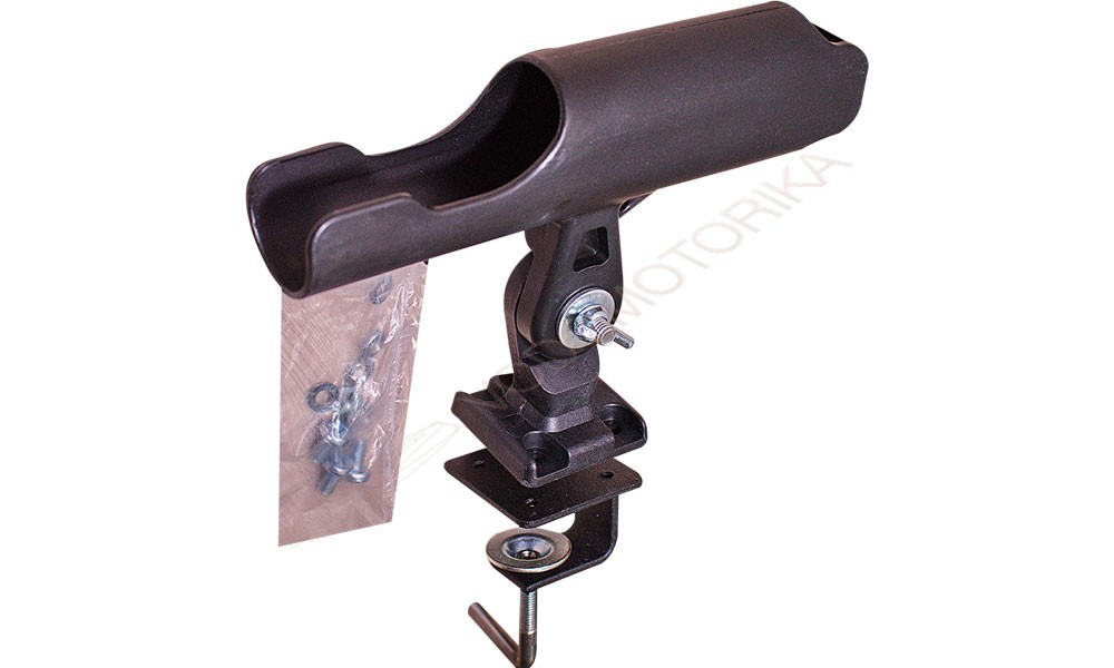 Держатель удочки на струбцине для транспортировки любых видов удилищ, клеится на баллон лодки. Предназначен для фиксирования удилища как в стоячем положении, так и при движении лодки.