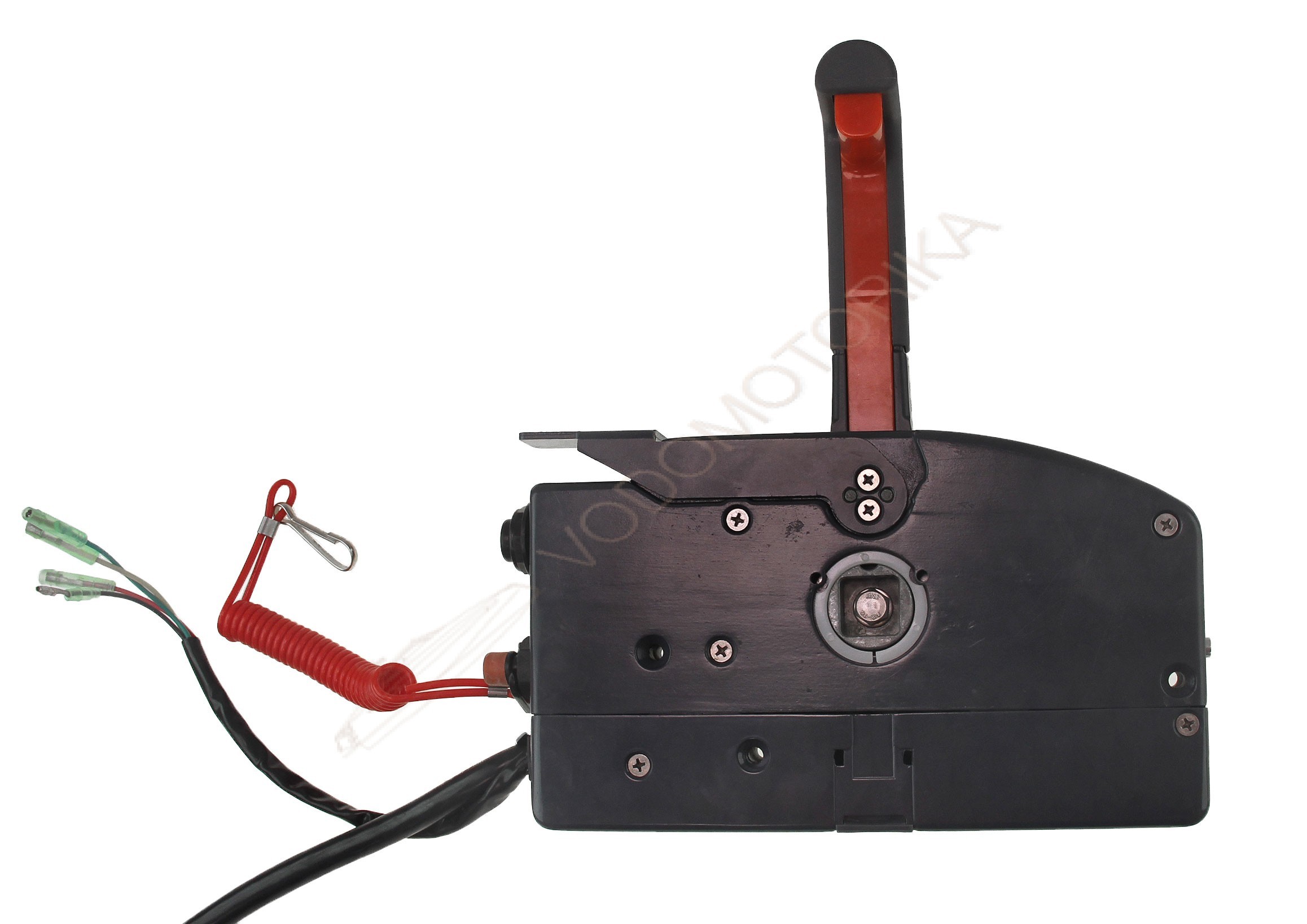 Контроллер дистанционного управления. Оснащен системой сигнализации, замком зажигания (с функцией запуска управления подсосом), выключателем аварийной остановки с чекой, контактным разъемом (7p). Особенности конструкции позволяют устанавливать контроллер как на правый, так и на левый борт. Длина кабеля - 5 м. Комплектуется переходниками тросов дистанционного управления.