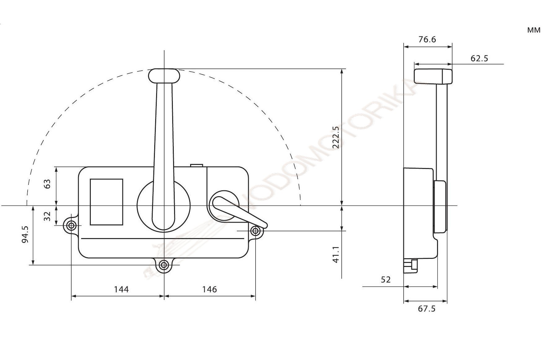 Контроллер дистанционного управления для моторов Yamaha. Применяется для совмещенного управления газом/реверсом лодочного мотора. Устанавливается на правый борт, тянет газ. Оснащен кнопкой для запуска стартера или остановки мотора (один из режимов). Длина кабеля - 5 метров.