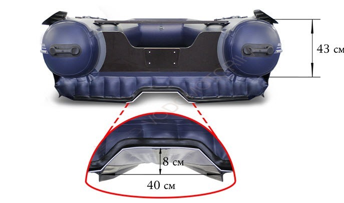 Киль и задние части баллонов защищены дополнительной ПВХ полосой.
