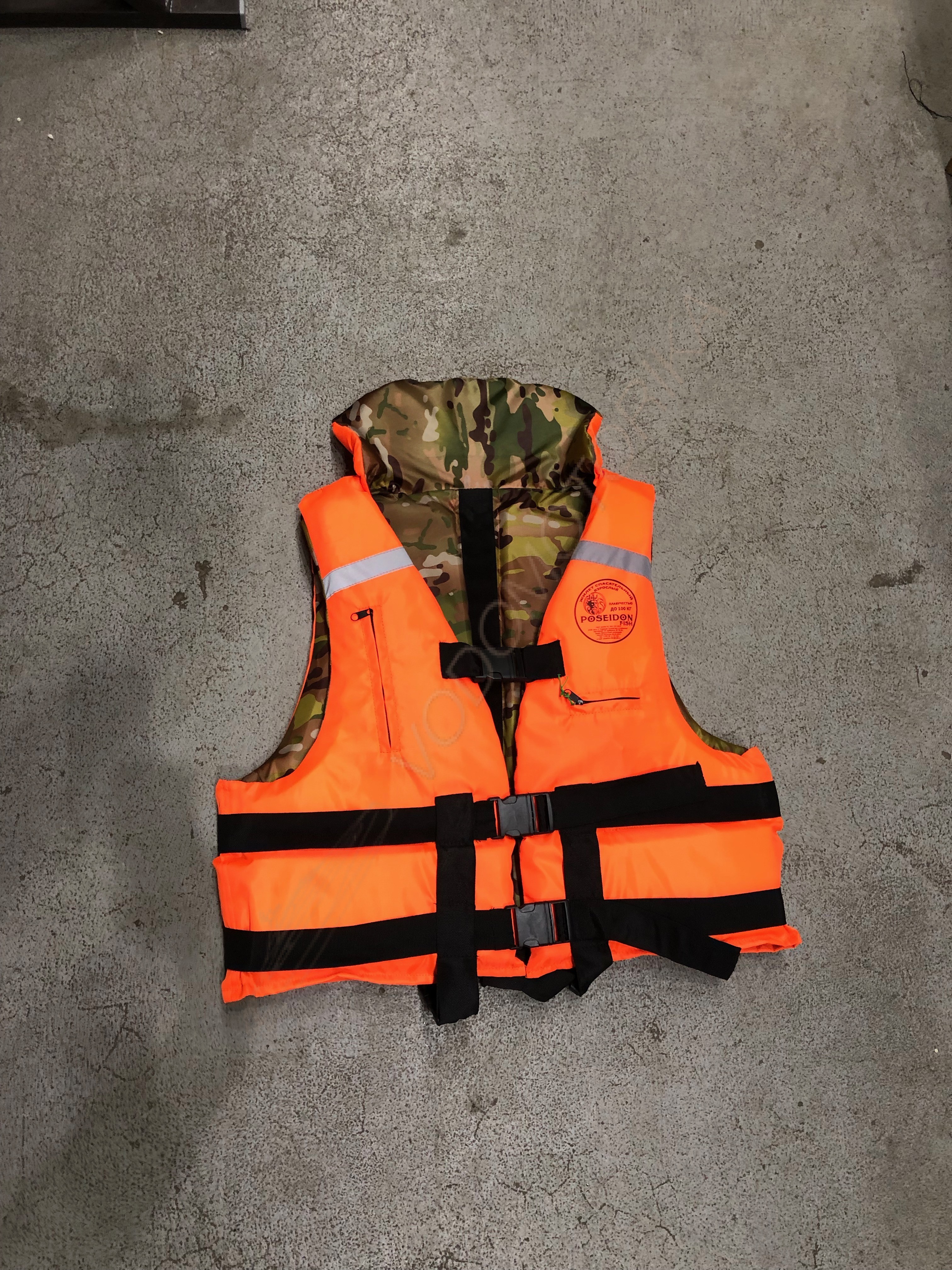 Спасательный жилет Капитан выполнен из двух основных тканей, с одной стороны камуфляж, а с другой ярко оранжевая расцветка.При одевании любой стороной владелец получает полноценный спасательный жилет с наличием карманов, в т.ч. закрытых молниями.