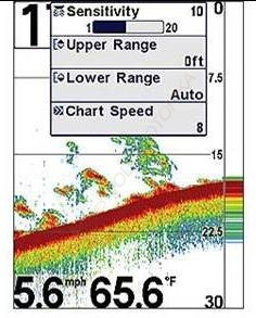 Благодаря двухлучевому датчику, рыба, которая находится непосредственно под лодкой, отображается полным символом, а рыба, которая находится справа или слева от лодки - пустым символом.