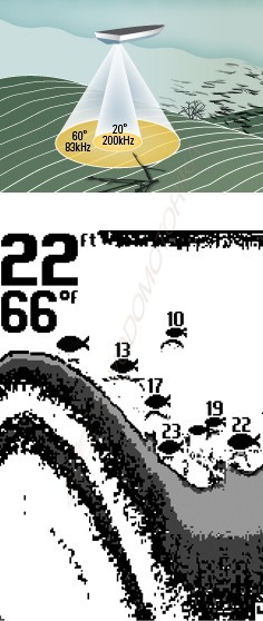 Рыбопоисковый эхолот этой серии имеет типичный набор функций и позволяет получить изображение структуры дна, отследить размеры рыбы, получить увеличенное изображение и представить дно в виде сплошной черной полосы.