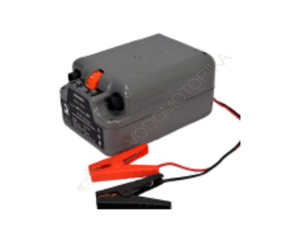 Электрический насос с питанием от источника тока напряжением 12 В. Максимальное давление 800 мБар, производительность 450 л/мин, разъемы под аккумулятор "аллигаторного" типа.