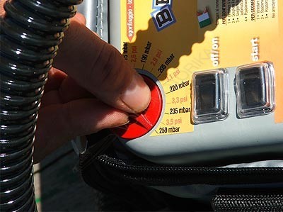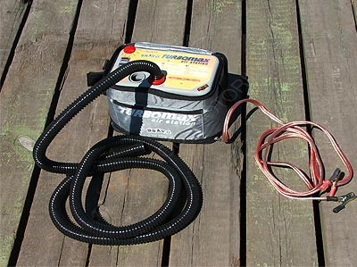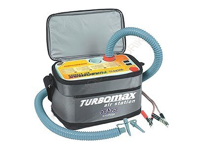 Производительная (до 1000 л/мин.) электрическая помпа Bravo Turbo Max с питанием 12V накачивает 7-ми метровую лодку за 10 мин. Величину давления до 250 мБар можно выставлять регулятором на корпусе. Насос, кабель питания длиной 3 м с разъемами под аккумулятор "аллигаторного" типа и шланг с набором переходников складываются в удобную сумку для переноски.