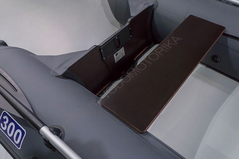 В комплект Baltic Boats Атлант-300 AIR входит два жестких сиденья, местоположение которых можно регулировать замками трения вдоль направляющих на баллонах (система ликтрос/ликпаз).