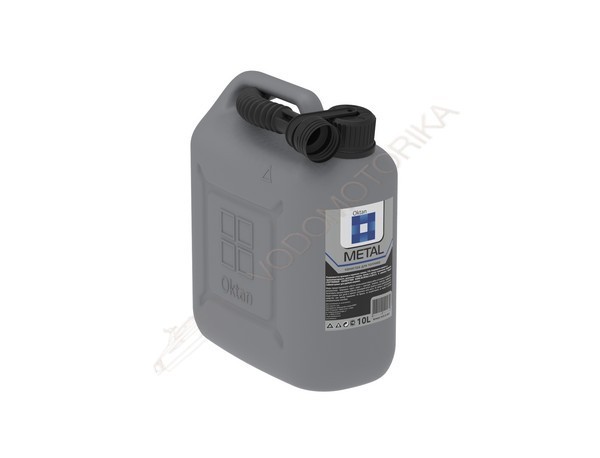 Специальная канистра для ГСМ и технических жидкостей металлического цвета. Канистра снабжена крышкой с замком и гибким заправочным носиком с технологией «Антибульк» для удобной заливки топлива горловину бака транспортного средства.