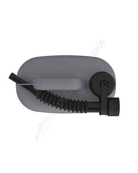 Специальная канистра для ГСМ и технических жидкостей металлического цвета. Канистра снабжена крышкой с замком и гибким заправочным носиком с технологией «Антибульк» для удобной заливки топлива горловину бака транспортного средства.