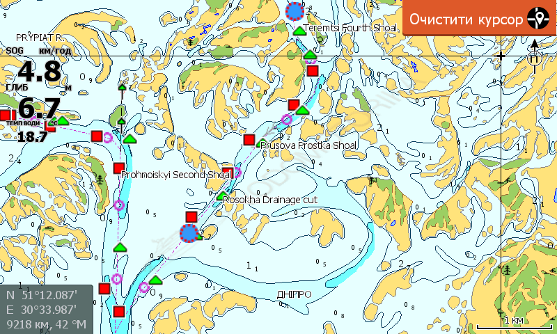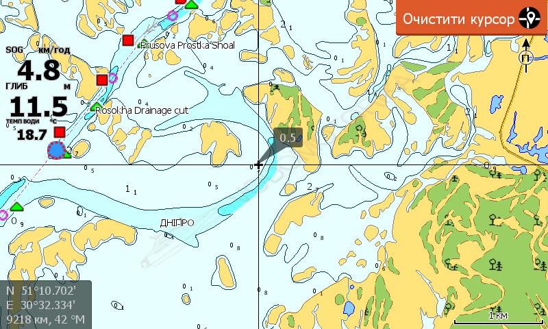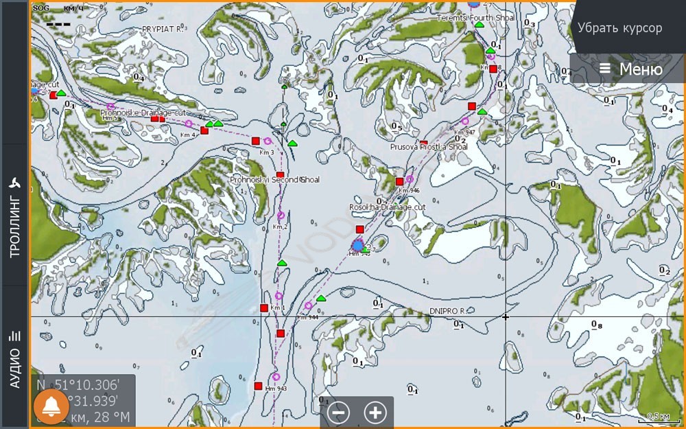 Зона покрытия карты: Река Днепр от границы Белоруси до Черного моря.