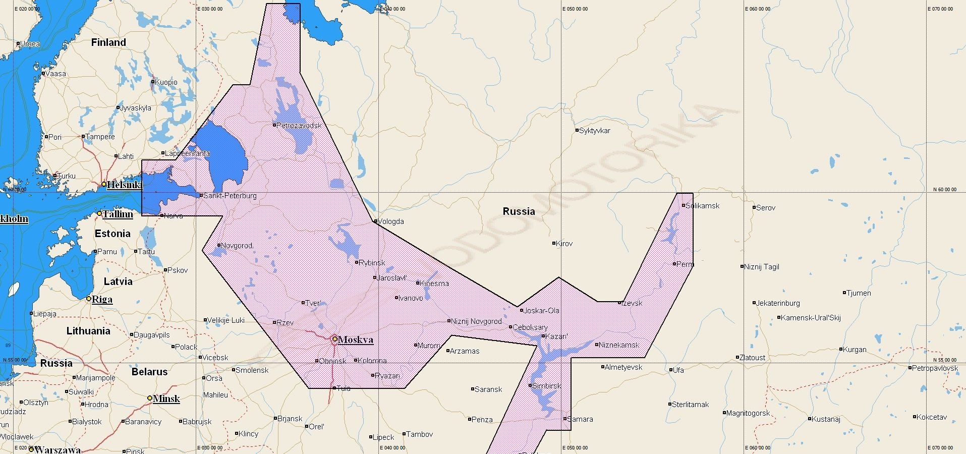 Единая Глубоководная система ВВП РФ и р. Волхов, оз. Ильмень, Селигер, озера Карельского Перешейка, Московской области и т.д., а так же Восточная часть Финского залива до границ Эстонии и Финляндии.