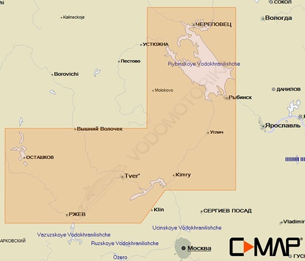 Навигационная карта C-MAP MAX-N+ WIDE RS-Y212 содержит информацию о регионе Река Волга от Ржева до Рыбинского моря.