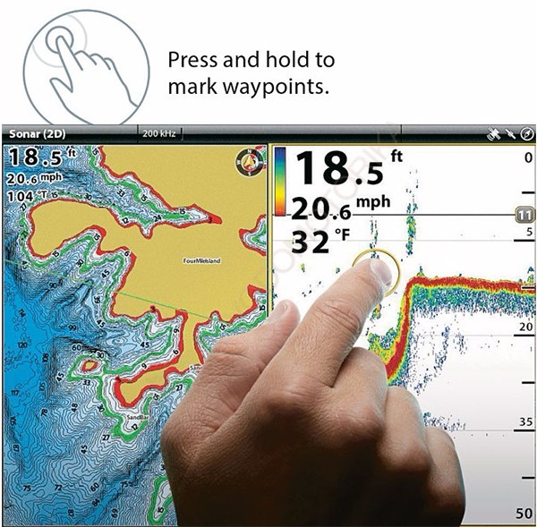 - Cross Touch – эксклюзивная технология Humminbird управления сенсорным экраном.