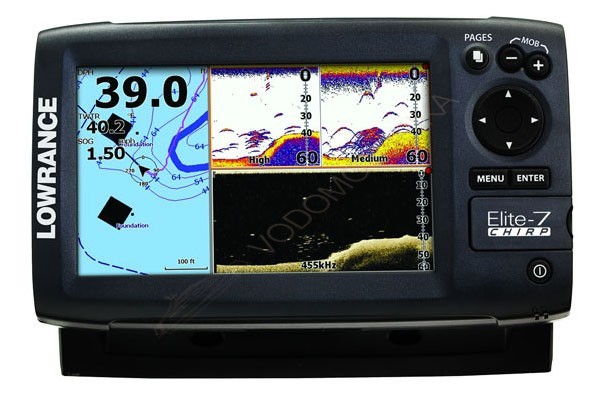 Новый эхолот/картплоттер Lowrance Elite-7 CHIRP с ярким 7-ми дюймовым широкоэкранным дисплеем, показывающим в формате 16:9, с разрешением 800x480 оснащен сенсационной технологией CHIRP (Compressed High-Intensity Radiated Pulse), вдобавок к уже имеющимся Broadband Sounder и DownScan Imaging. CHIRP сонар обладает высокой чувствительностью, обеспечивает более качественное разрешение и превосходное шумоподавление, в результате чего места приманок и обитания рыбы можно увидеть, что называется «невооружённым глазом».
