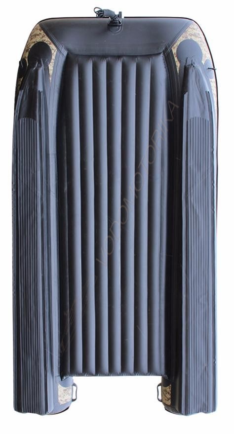 Лодка имеет надувное днище низкого давления по типу надувного матраца, не уступающее по жесткости и комфорту твердым настилам.