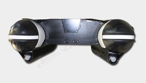 Между транцем и баллонами установлены брызгозащитные косынки (комингсы).