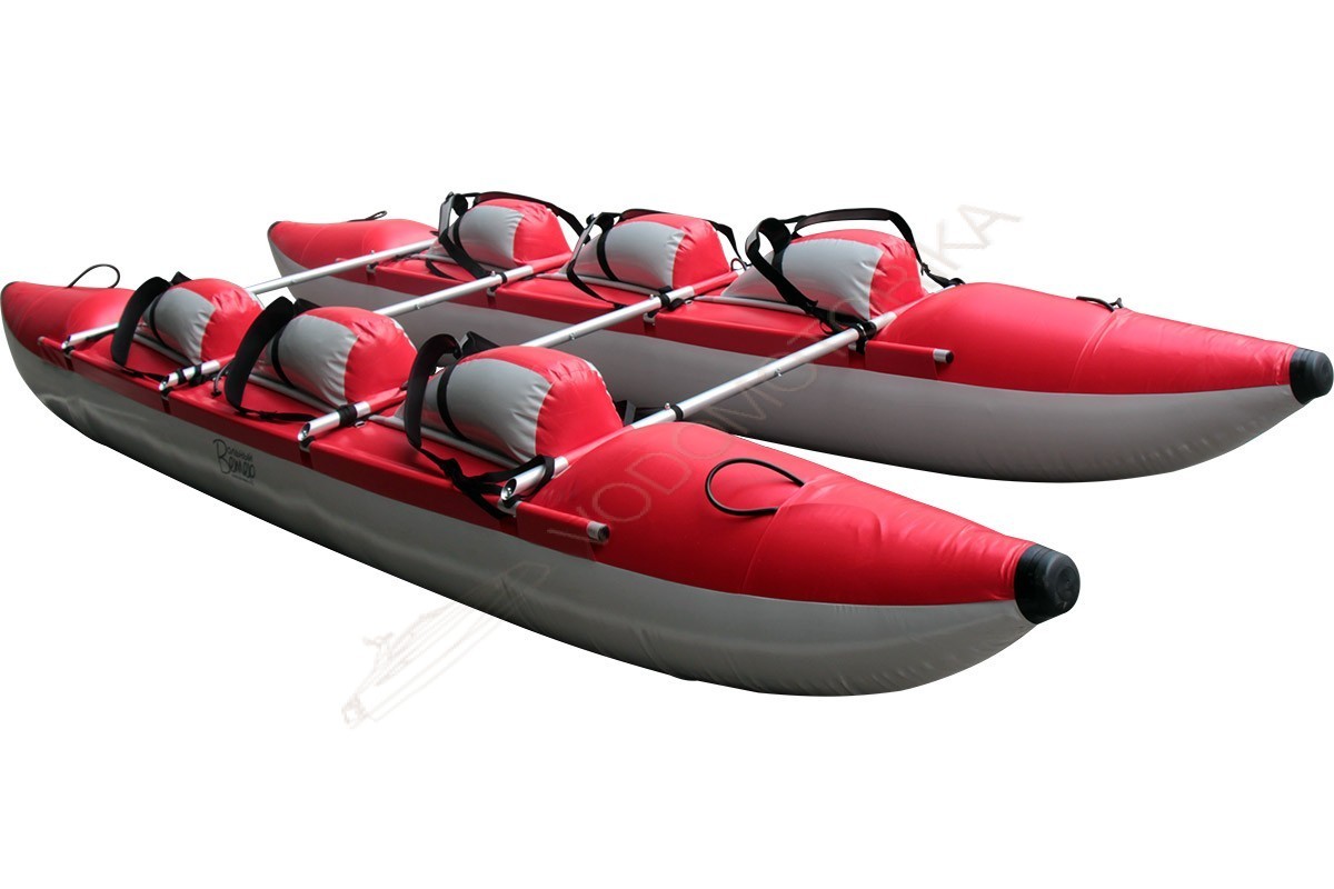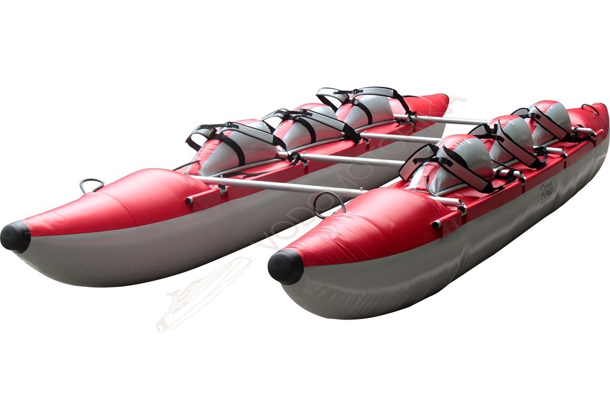 Обводы катамарана позволяют легко управлять им при прохождении порогов и держать хорошую скорость на плесах, а расстояние между сидушками позволяет полноценно работать всем членам экипажа при любых маневрах.