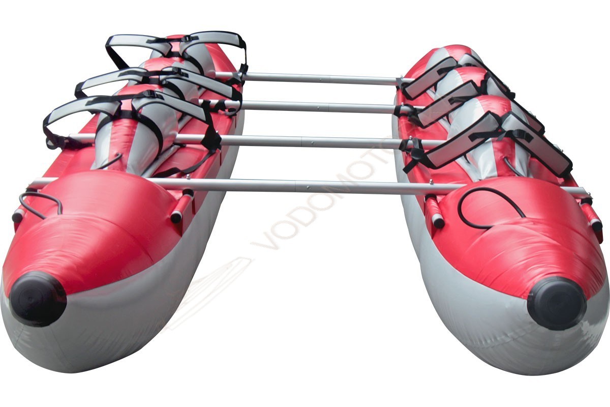 В комплект катамарана "Арктика" входят шесть съёмных надувных сидушек с упорами для коленной посадки.