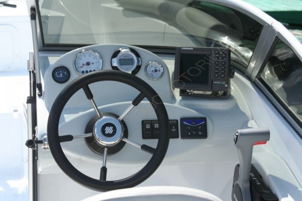 На водительской находится штурвал дистанционного управления и кнопочная панель с переключателем массы и розеткой 12В.