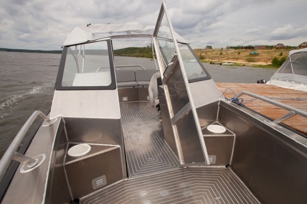 Пол лодки изготовлен из основного материала - алюминия.