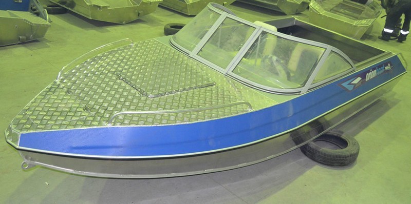 Алюминиевая лодка Orionboat 48 ku капотная, с промежуточными ветровой форточкой.