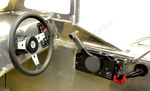 Лодка оборудована комплектом дистанционного управления (штурвал, штуртрос) и топливным баком.