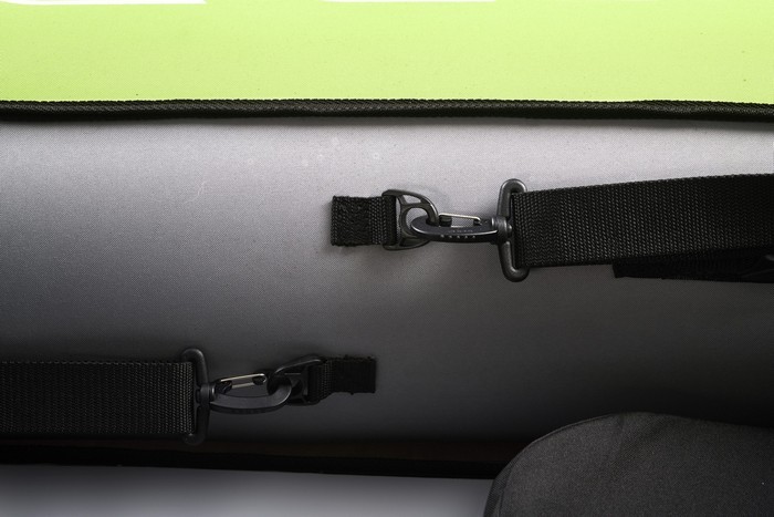 Покрытие нижней части каяка и верхних частей боковых камер изготовлено из сверхпрочного материала, специально разработанноого для того, чтобы выдерживать удары, быть устойчивым к проколам и швартоваться даже на каменистый берег.