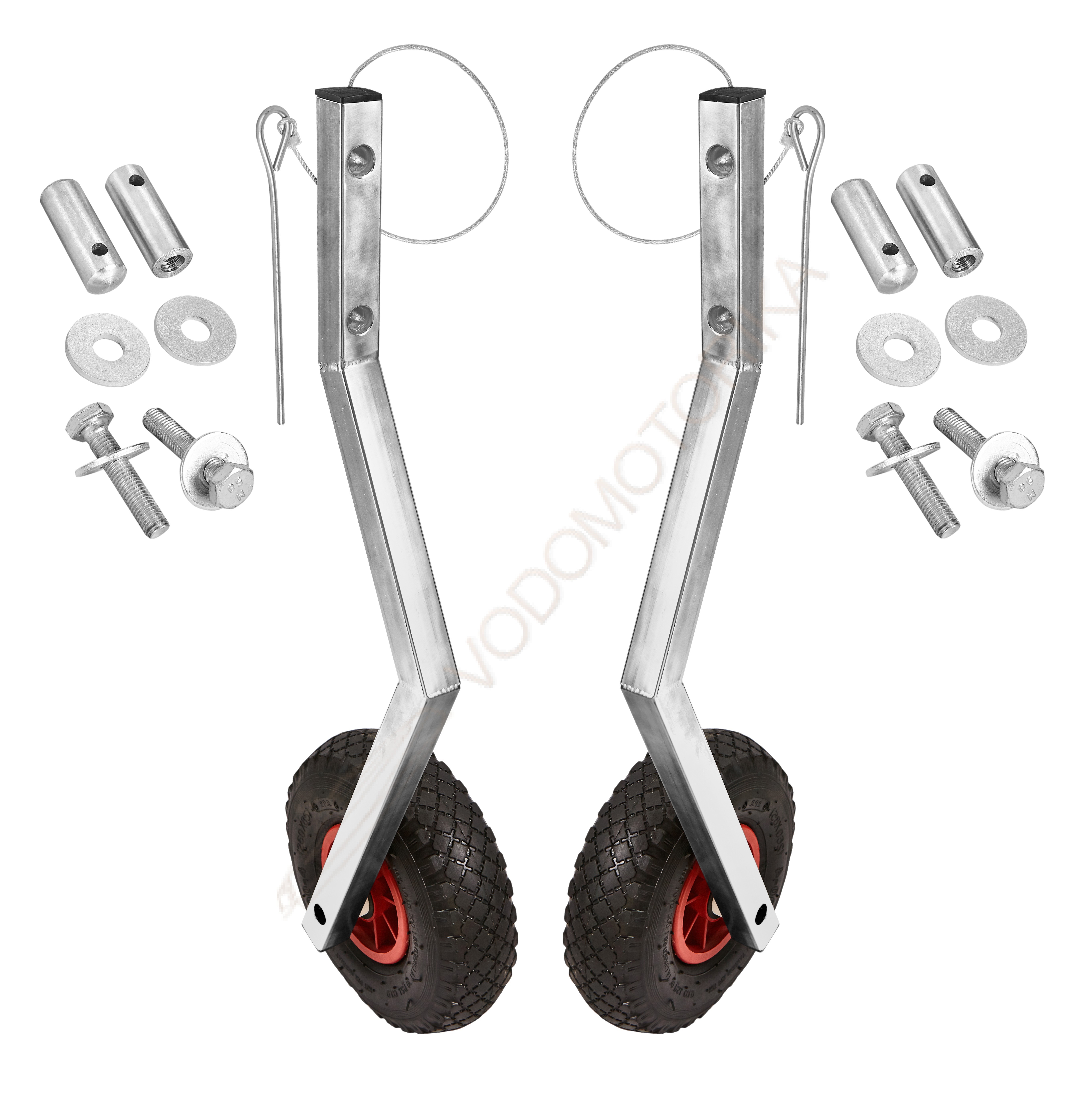 Эти транцевые колеса разработаны специально для перемещения лодок с надувным дном НДНД. Хороший дорожный просвет позволяет перемещать судно по берегу, не боясь повредить днище о коряги и камни. Модель имеет как рабочее, так и транспортное положение.