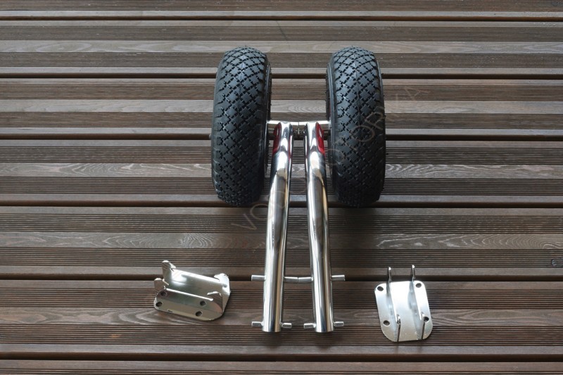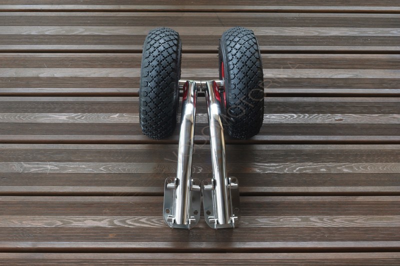 Транцевые колеса (шасси) – служат для транспортировки лодки по суше к месту назначения. Они позволяют вручную одному человеку осуществить спуск на воду или подъем лодки из воды на берег. Транцевые шасси изготавливаются различных размеров из высококачественных материалов не подлежащих коррозии.