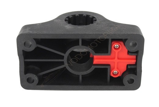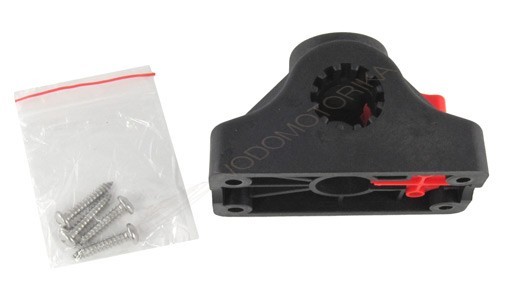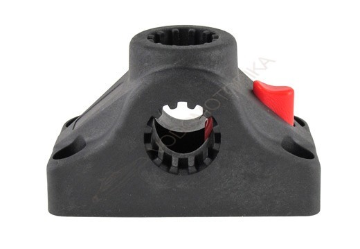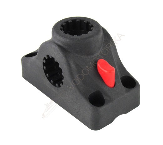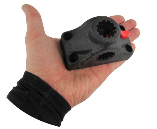 Крепление подставки для удочки универсальное с фиксирующей кнопкой. Изготовлено из прочного пластика.