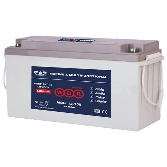 Литиевые (литий железо фосфатные LiFePO4) герметизированные лодочные аккумуляторные батареи WBR Marine серии MBLi обладают высоким качеством и надежностью, высокой цикличностью использования, устойчивы к глубоким разрядам и применяются для питания на яхтах, катерах и моторных лодках. Возможно применение как источников питания для электронасосов, эхолотов, осветительных приборов и другого вспомогательного оборудования. Обладают в 20 раз большей цикличностью и большим сроком службы, чем свинцово-кислотные аккумуляторы, что помогает минимизировать затраты на замену и снизить общую стоимость владения. Аккумулятор MBLi вдвое мощнее, имеет более высокую скорость разряда, сохраняя при этом высокую энергетическую емкость, на 60% легче аналогичной свинцово-кислотной батареи. Превосходная безопасность: химия фосфата лития железа исключает риск взрыва или горения из-за сильного удара, перезаряда или короткого замыкания.