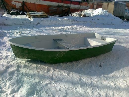 Пластиковая лодка поставляется в зеленом цвете с белым кокпитом.