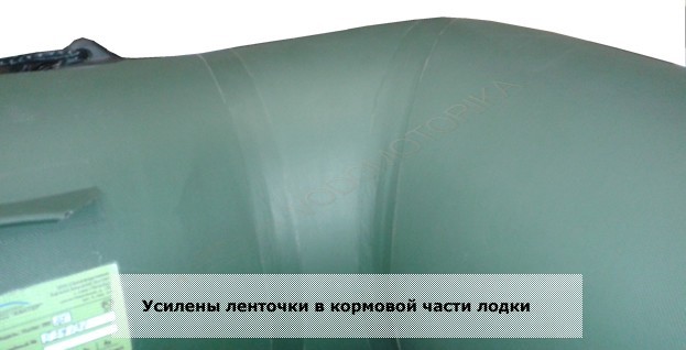Диаметр баллонов лодки 39 см, 2 герметичных отсека. Швы собраны встык, с обеих сторон шов усилен полосами из основного материала. Используемый клей образует с поверхностью одно целое на молекулярном уровне. Для защиты баллонов при швартовке установлен привальный брус.