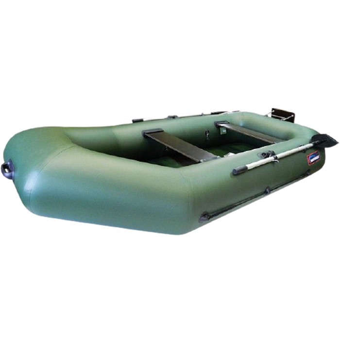 Безопасность пассажиров надувной лодки дополнительно обеспечивается натянутым вдоль борта леерным тросом. Разборные весла имеют длину 1,6 м. На носу установлена ручка для удобства переноски, на корме – рым-кольцо. Для фиксации весел в стояночном положении имеются держатели.
