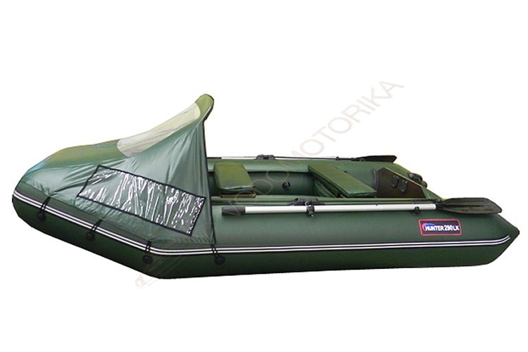Безопасность пассажиров Хантер 290 ЛК Комфорт дополнительно обеспечивается натянутым вдоль борта леерным тросом. Разборные весла имеют длину 1,6 м. На носу и корме установлены ручки для удобства переноски. Для фиксации весел в стояночном положении имеются держатели. Между транцем и баллонами установлены брызгозащитные косынки (комингсы). Днище в уязвимых местах усилено дополнительным ПВХ профилем.