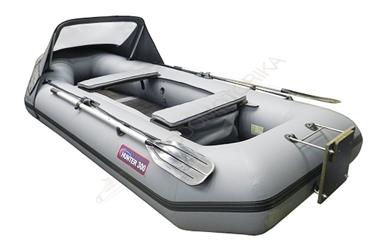 Надувная лодка поставляется с навесным транцем из водостойкой фанеры. Особенности Безопасность пассажиров Хантер 300 ЛТ дополнительно обеспечивается натянутым вдоль борта леерным тросом. Разборные весла имеют длину 1,6 м. На носу установлена ручка для удобства переноски, на корме – рым-кольцо. Для фиксации весел в стояночном положении имеются держатели.