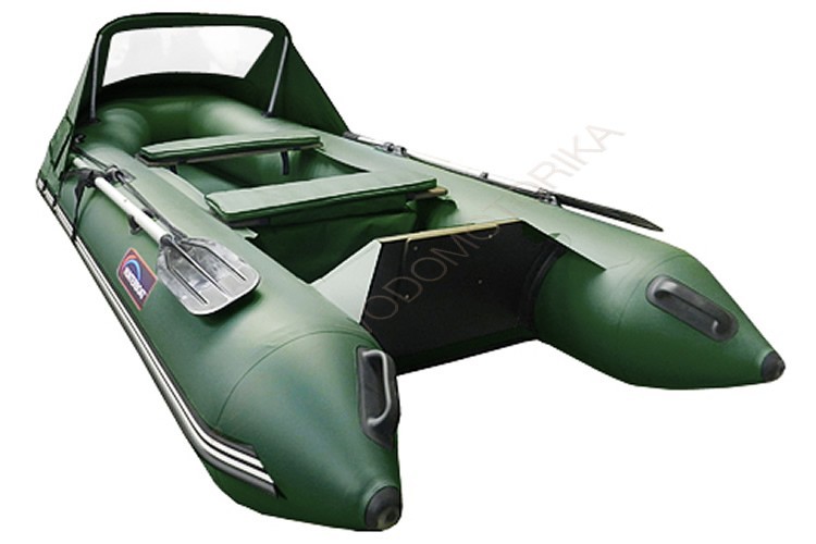 Надувная лодка поставляется в сером и зеленом цвете.