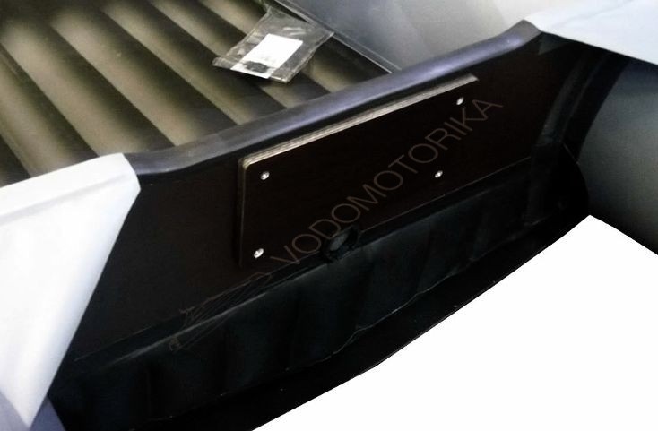 В месте крепления двигателя установлены дополнительные накладки для уменьшения износа. На верхнюю кромку транца установлена ПВХ защита.