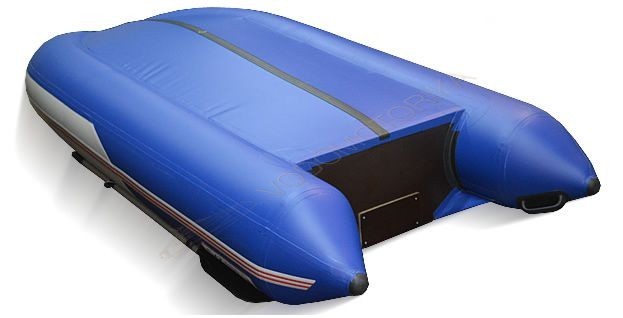 Надувная лодка имеет жестко вклеенный транец из водостойкой многослойной фанеры.