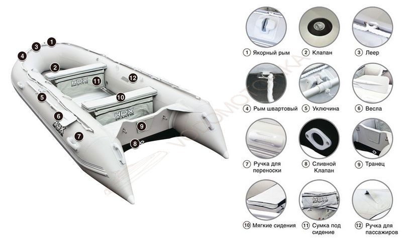 В носовой части HDX OXYGEN 280 AL установлен якорный рым, который можно использовать как дополнительную ручку при переноске.