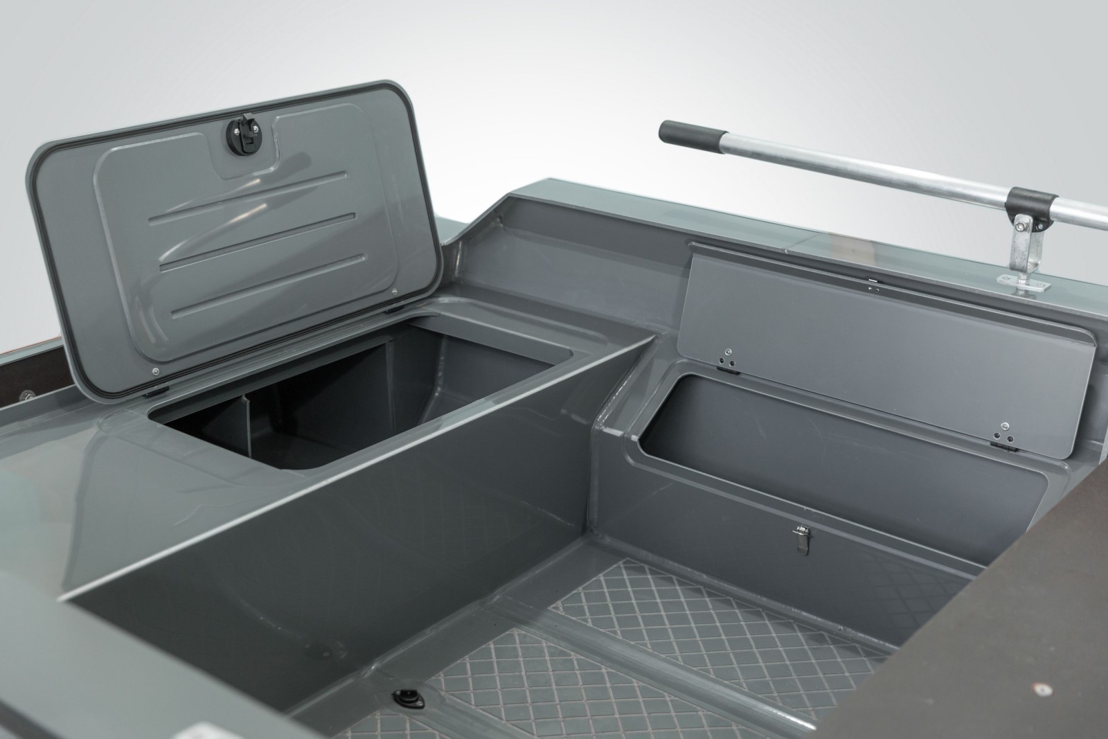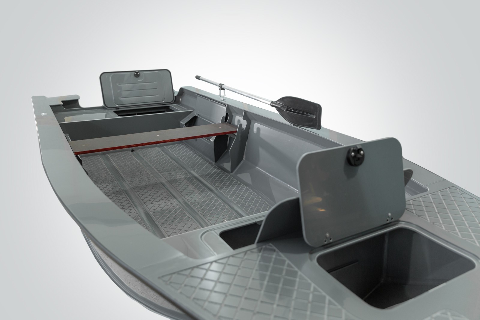 Большие блоки плавучести, расположенные в носу и корме, обеспечивают непотопляемость лодки полностью залитой водой.