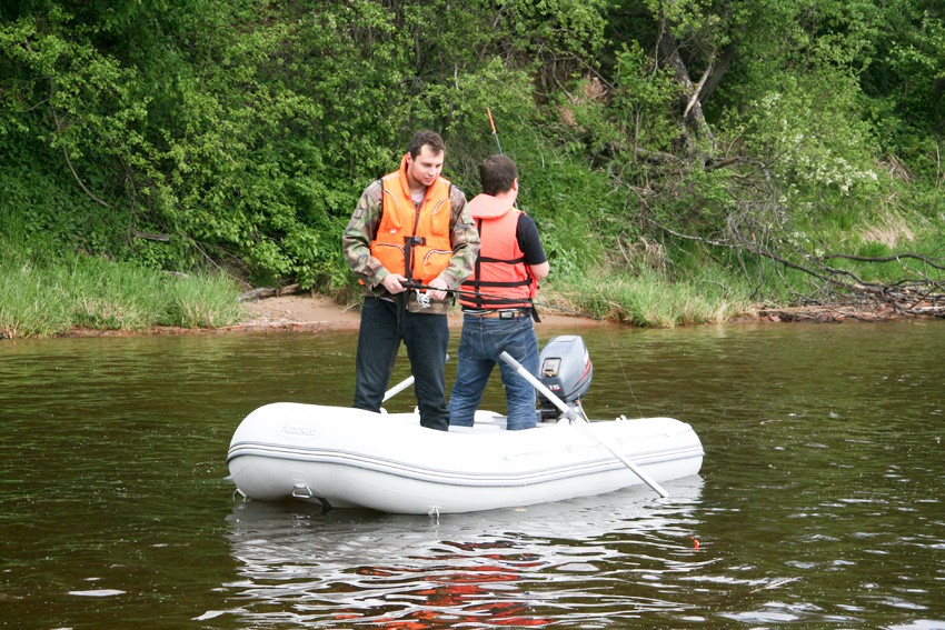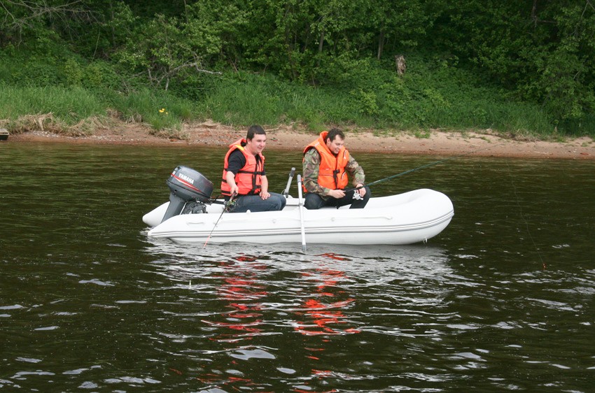 Лодка имеет транец из окрашенной водостойкой фанеры, который жестко приклеен к баллонам. В месте крепления двигателя предусмотрены накладки для уменьшения износа.