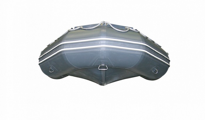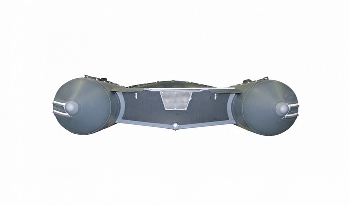 Лодка имеет транец из окрашенной водостойкой фанеры высотой 380 мм, который жестко приклеен к баллонам. В месте крепления двигателя предусмотрены накладки для уменьшения износа.