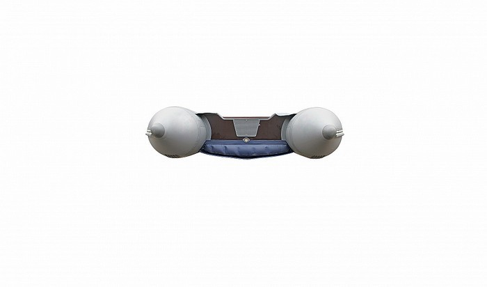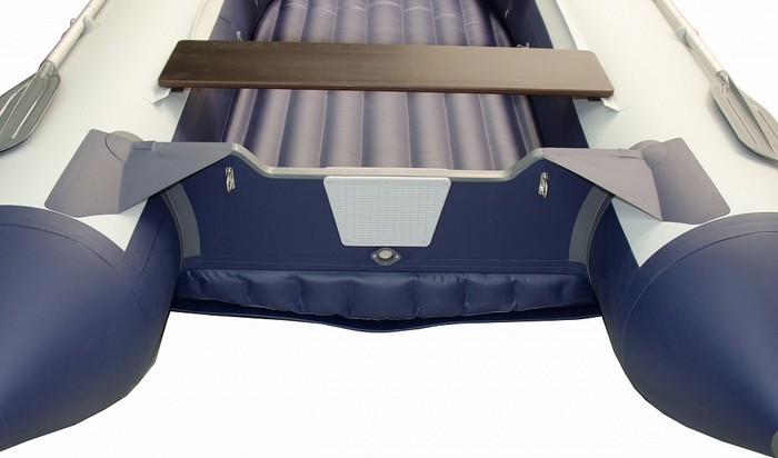 Лодка имеет транец из окрашенной водостойкой фанеры, который жестко приклеен к баллонам.
