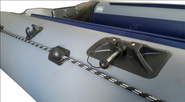 На концах баллонов и на носу лодки установлены ручки для переноски, на носу имеется рым-ручка для буксировки.