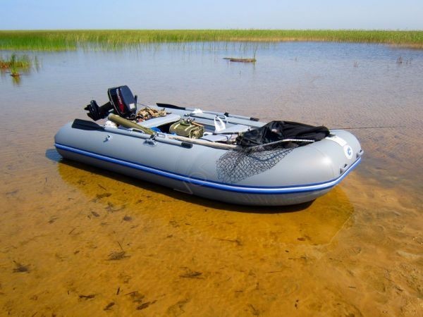 Лодка имеет надувное днище по типу надувного матраца, не уступающее по жесткости и комфорту твердым настилам.