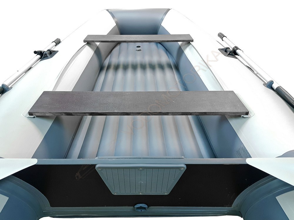 В комплект надувной лодки входят два жестких сиденья из влагостойкой фанеры.