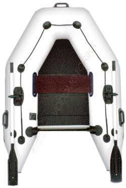Лодка имеет стационарный транец, жестко приклеенный к баллонам.