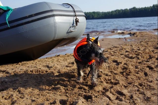 Лодка имеет транец из окрашенной водостойкой фанеры, который жестко приклеен к баллонам. В месте крепления двигателя предусмотрены накладки для уменьшения износа.